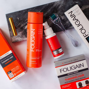 Sperimenta il potere trasformativo dell'esclusivo Trioxidil® di FOLIGAIN®, un complesso nutriente a tripla azione meticolosamente realizzato e progettato da un team di esperti nella cura dei capelli. Questa formula innovativa, contenente ingredienti naturali e bioattivi, è stata clinicamente testata non solo per ridurre la caduta dei capelli*, ma anche per promuovere la salute generale del cuoio capelluto, aiutandoti a ritrovare la tua sicurezza e a ottenere i capelli che desideri.